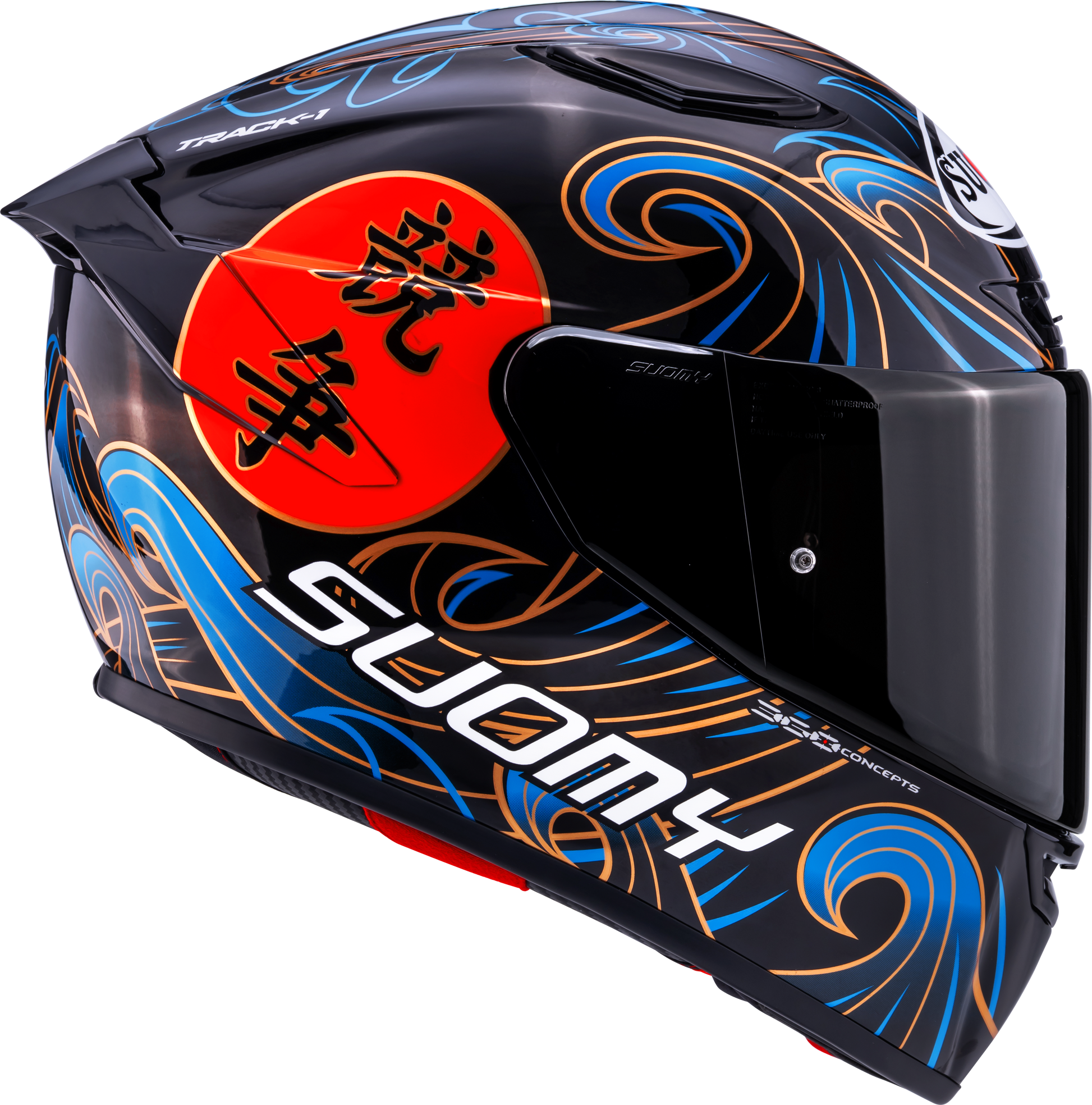 スオミ トラック-1 ウェーブス ブラックは、ミニマリストで波状のグラフィックデザインを純粋なモータースポーツのキャラクターと組み合わせています。マットと光沢のあるブラックアクセントは、洗練され、現代的でありながら力強く、派手な色を好まないライダーに最適です。
