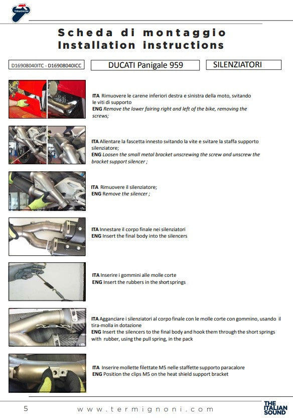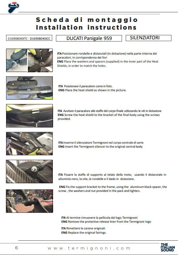 - タイプ: Slip-On排気キット for Ducati Panigale 959 (2016-2019) – 最大性能と最適化されたガス応答のために設計されています。