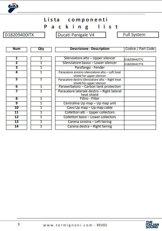 ターミニョーニ 完全排気システム チタニウム 4USCITE ドゥカティ パニガーレ V4 R (19-24) D18209401TTX