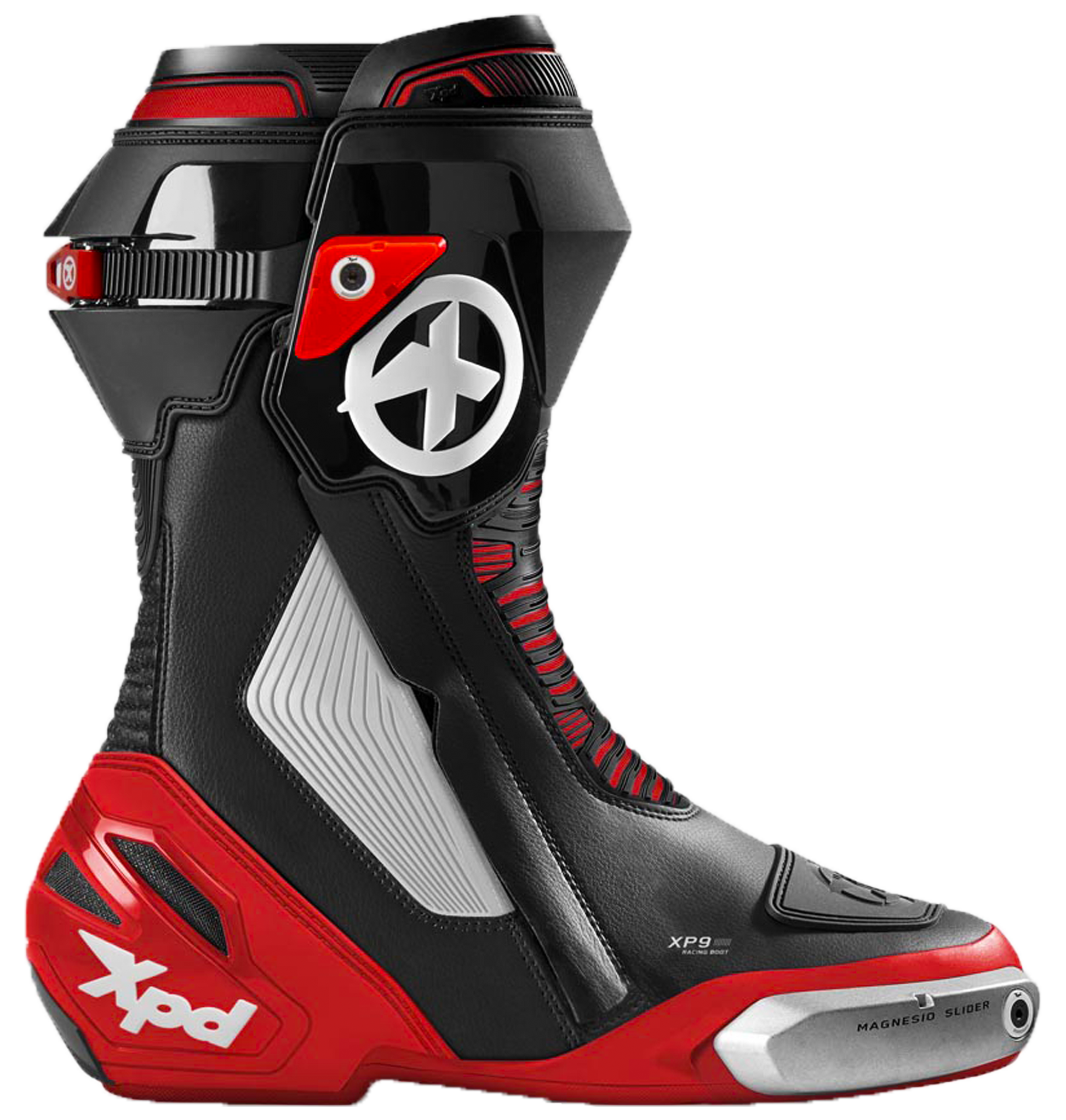 サーキットでの信頼性を提供し、街中でもストレスを感じさせず、コストパフォーマンスに優れたブーツが欲しい。これが、XPD XP9-Sのブラック/レッドの特徴です:明確なレーシングDNAを持つスポーティなバイクブーツで、頑丈で信頼性が高く、長距離走行後も快適に履き続けられるように設計されています。